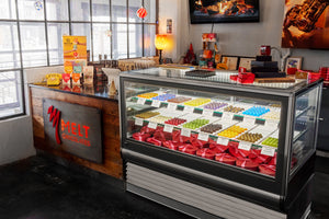 In September 2017, Melt Chocolates opened a retail store inside the Lincoln Warehouse at 2018 South 1st Street. We are in suite 120 on the first floor and behind dock doors #6 and #7. The space is industrial / warehouse with European fixtures. There is an 8 foot by 4 foot viewing window into the chocolate production area. Stop in and say hello. While you are here, pick up a box of chocolates to enjoy for yourself or share with a friend!